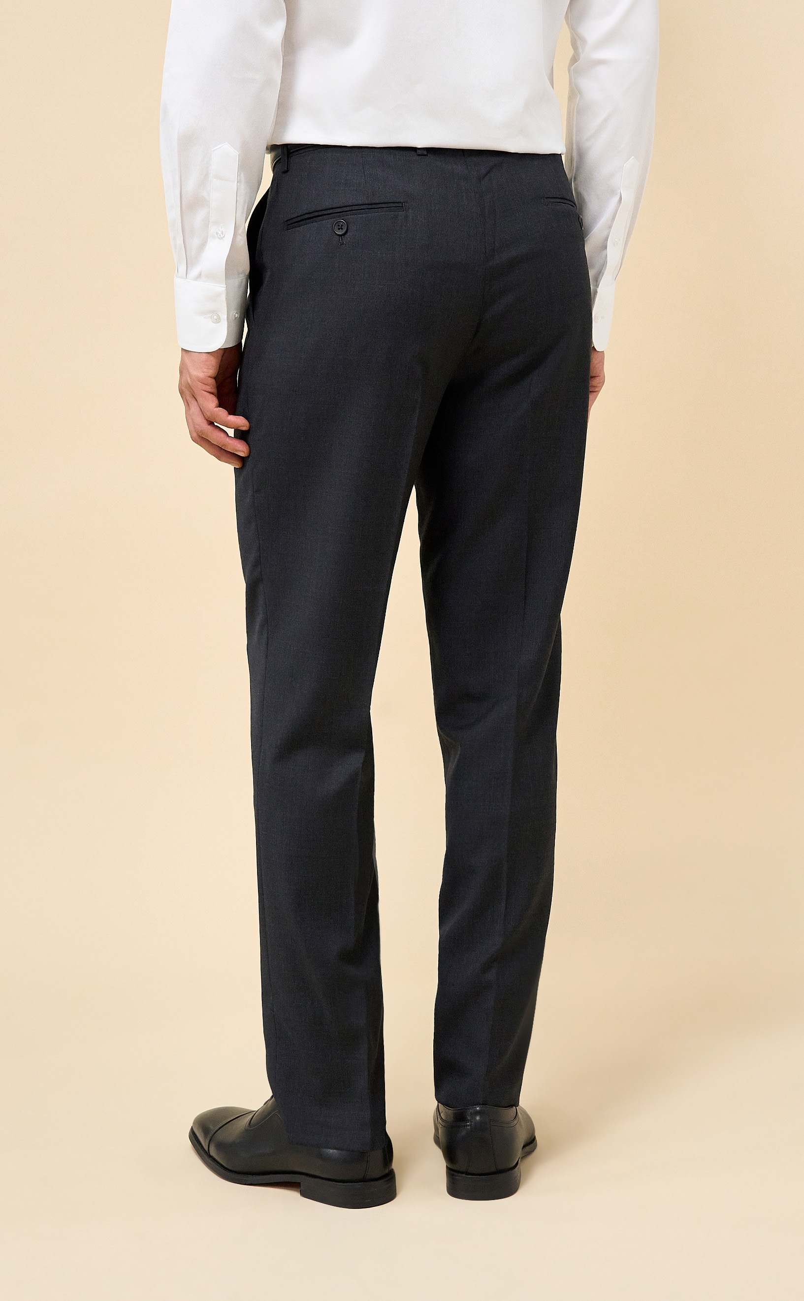 Crafted from 100% Merino wool in an all-season weight, these Charcoal trousers offer year-round comfort with a refined finish. Designed with a flat front and waistband with belt loops, they feature slanted side pockets, two rear button-through jetted pockets, and an unfinished inseam for easy tailoring.