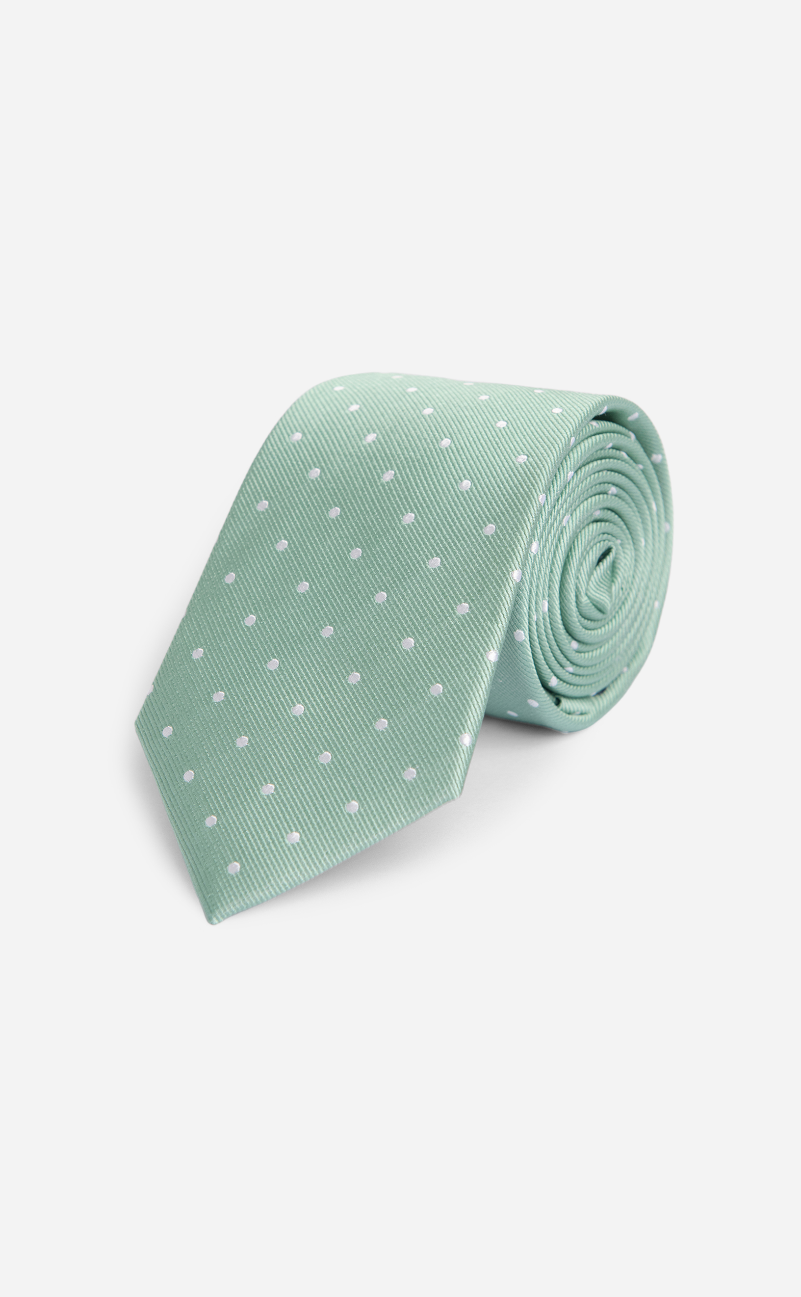 Made from 100% silk with a diagonal twill weave, this Sage Green twill polkadot 3.25-inch self‑tipped tie is refined, durable, and perfect for weddings or formal celebrations.